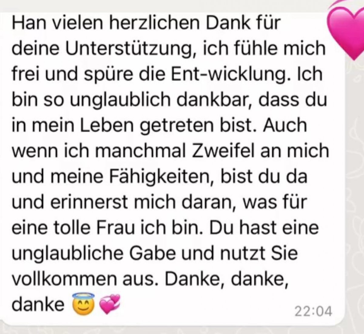 Aus diesem Grund habe ich für dich eine wertvolle Masterclass aufgezeichnet, damit du sofort mit deiner Transformation beginnen kannst. Und dein Leben auf Moneyflow, Leichtigkeit, Wohlstand und Fülle ausrichten kannst. Und du mit der Energie von tiefwirkenden Affirmationen, deine Wünsche auch in dein Unterbewusstsein verankern kannst.